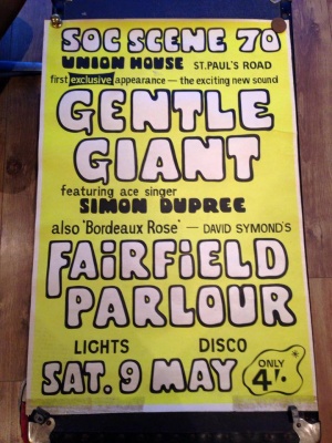A photo of the first Gentle Giant concert poster appeared on (of all places) a Volkswagen web site in 2015. Thanks to Jack Skelly for noticing it!