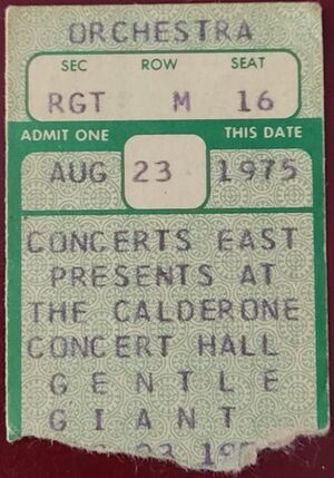 At 15 years old, August 23 1975 was an iconic show for me. All my friends were tripping. I was not. The Kiss crowd outside the Calderone Concert Hall before GG made quite a scene. Kiss was still a cult band at this time. Some of their fans were selling homemade photos of Gene Simmons blowing flames from the stage. When the GG show started, it was well after midnight and I was floored by their musicianship and lightshow. Luckily I had a ride home with some older guys because some of my friends walked home still tripping. About a 12 mile hike. A favorite concert ticket stub from back in the day.