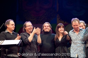 Orchestra Contemporanea is a 30-piece orchestra in Italy. Gary Green and Malcolm Mortimore performed a long medley of Gentle Giant pieces with them on November 29, 2010. See photos of the concert.