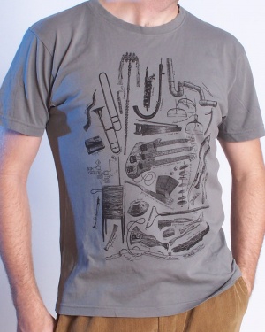 Michael Phipps designed an Instrumental Oddities t-shirt that includes a Shulberry, along with other rare instruments.