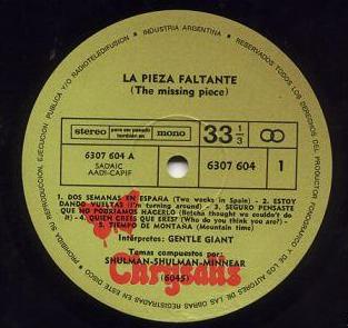 This is the release of The Missing Piece in Argentina by Phonogram Records (6307604). The liner notes and track list are in Spanish.
