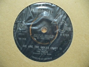 In 1968, Simon Dupree and the Big Sound released a single under the name "The Moles." This was done secretively by putting the tape into a subway locker in London and sending the key to "a major English music publication with a letter stating that the tape should be released on the Parlophone label" [1]. The tape contained the songs: